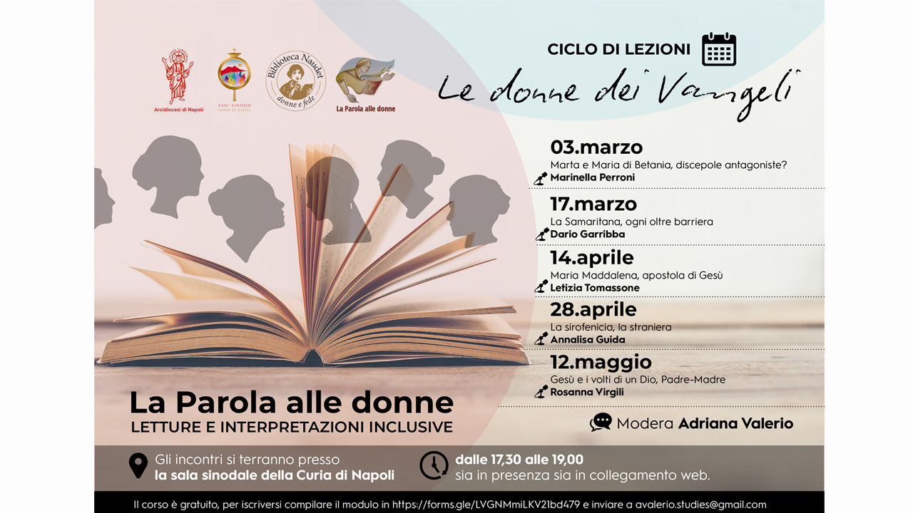 Marinella Perroni will be answering this question by opening on March 3 a series of events organized by the Diocese of Naples on The Women of the Gospels. There are two New Testament stories that convey the memory of these two sisters: one by Luke and another by John, connoting the sisters of Bethany not only differently, but discordantly. For Luke, Martha is a woman to whom too much burden of domestic work has made lose the dimension of trust in providence that, instead, shines in Mary. On the hand, John narrated Martha as a disciple “that Jesus loved” together with her sister Mary and her brother Lazarus, and which is able to express the highest confession of faith of the whole fourth gospel. Unfortunately, in the Christian tradition Martha then became, in contrast to Mary, a model that mortified generations and generations of women, instead of imposing herself as a privileged witness of faith in the resurrection. See the poster and be informed on the following events.